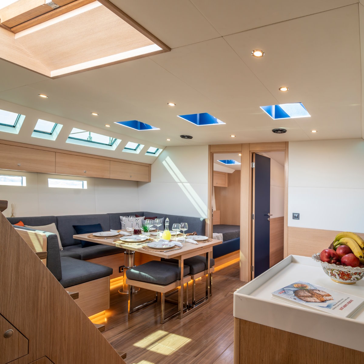 Layout: Bright interior with flexible cabin configuration and spacious panoramic saloon.