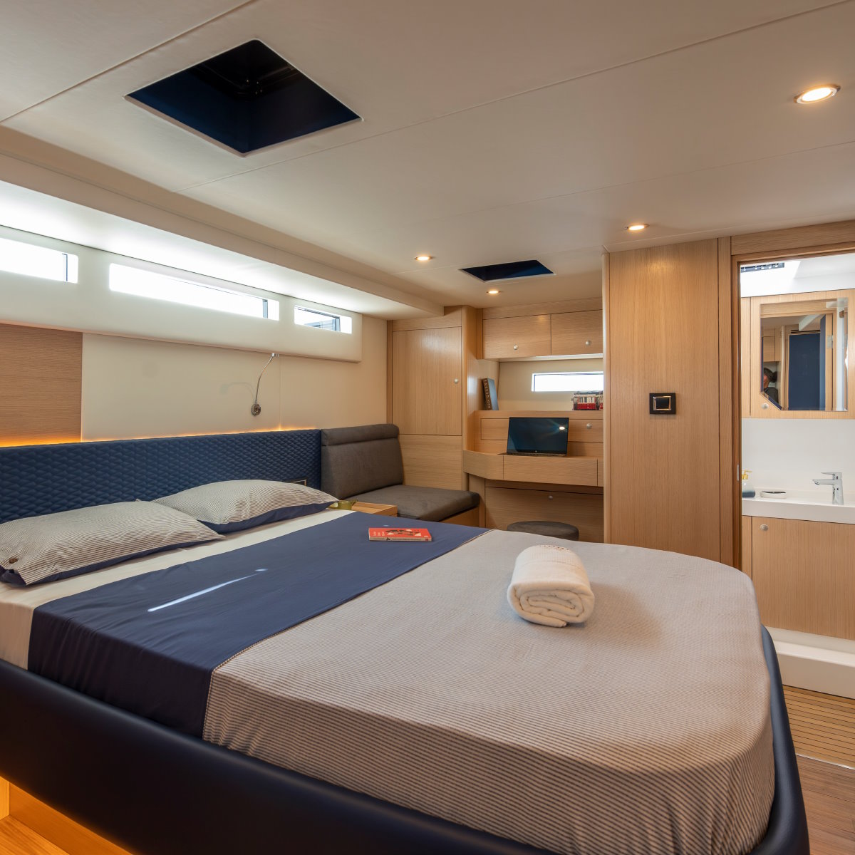 Accommodation: Spacious guest areas with multiple luxury cabins designed for extended cruising.